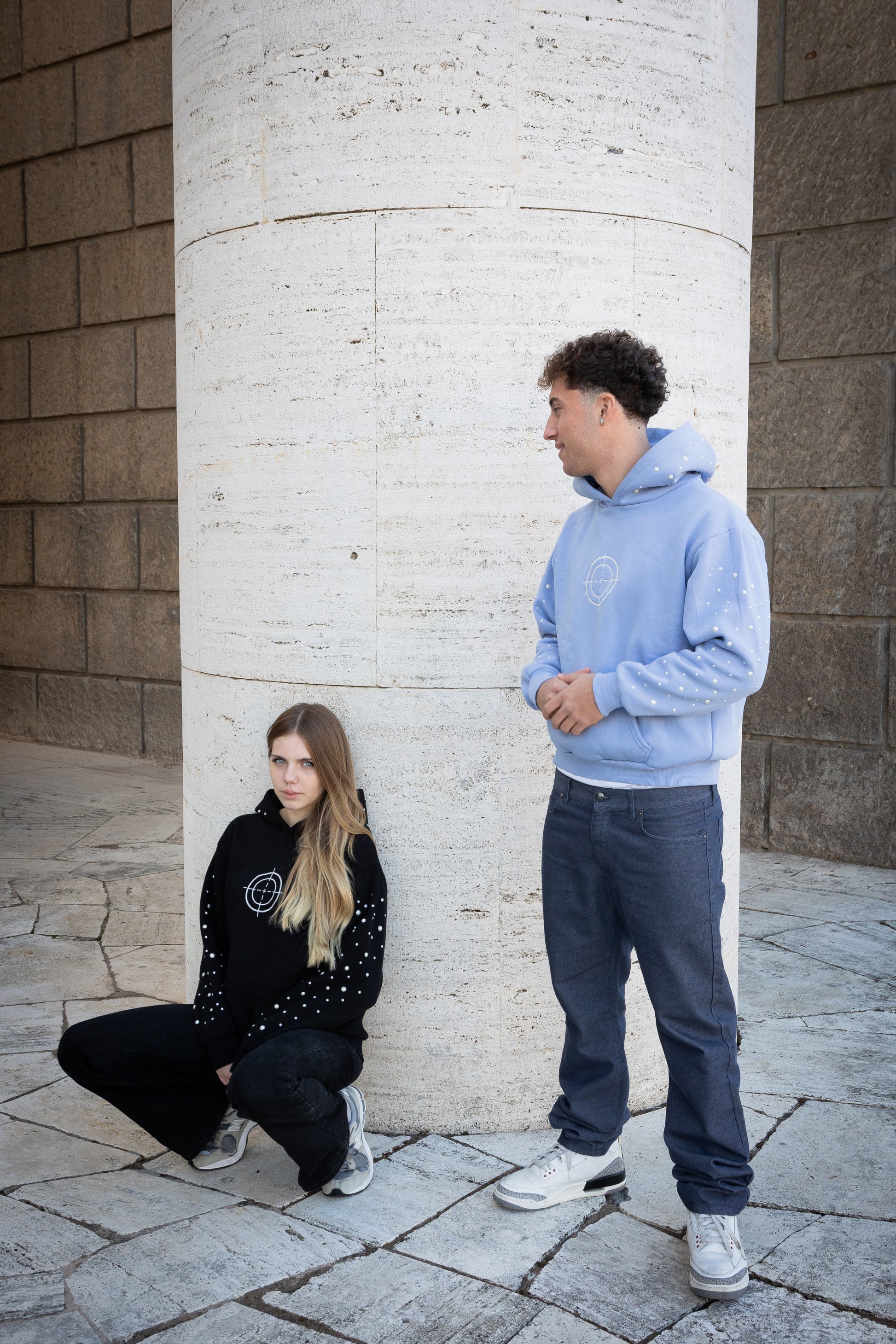 PRODOTTA DA 0 DA NOI IN ITALIA, PERLE APPLICATE A MANO DA NOI, MATERIALI DI ALTÀ QUALITÀ, FIT BOXY & ETICHETTE IN MISTO COTONE.
